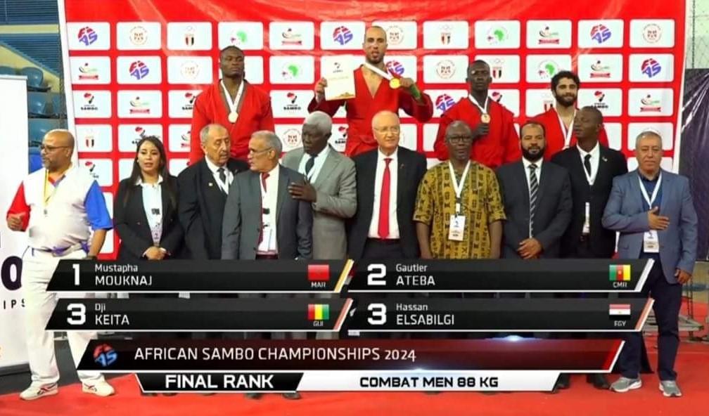 Championnat du monde de Sambo Combat Séniors organisé en Arménie avec une médaille d’or, une médaille d’argent et une médaille de bronze, remportées respectivement par les athlètes « NJI MOUUH SEIDOU du Cameroun (1ère place dans la catégorie de -98 kg), DJANTOU MAXWELLE du Cameroun (2ème place dans la catégorie de +98 kg) et MUSTAPHA MOUKNAJ du Maroc (3ème place dans la catégorie de -88 kg).