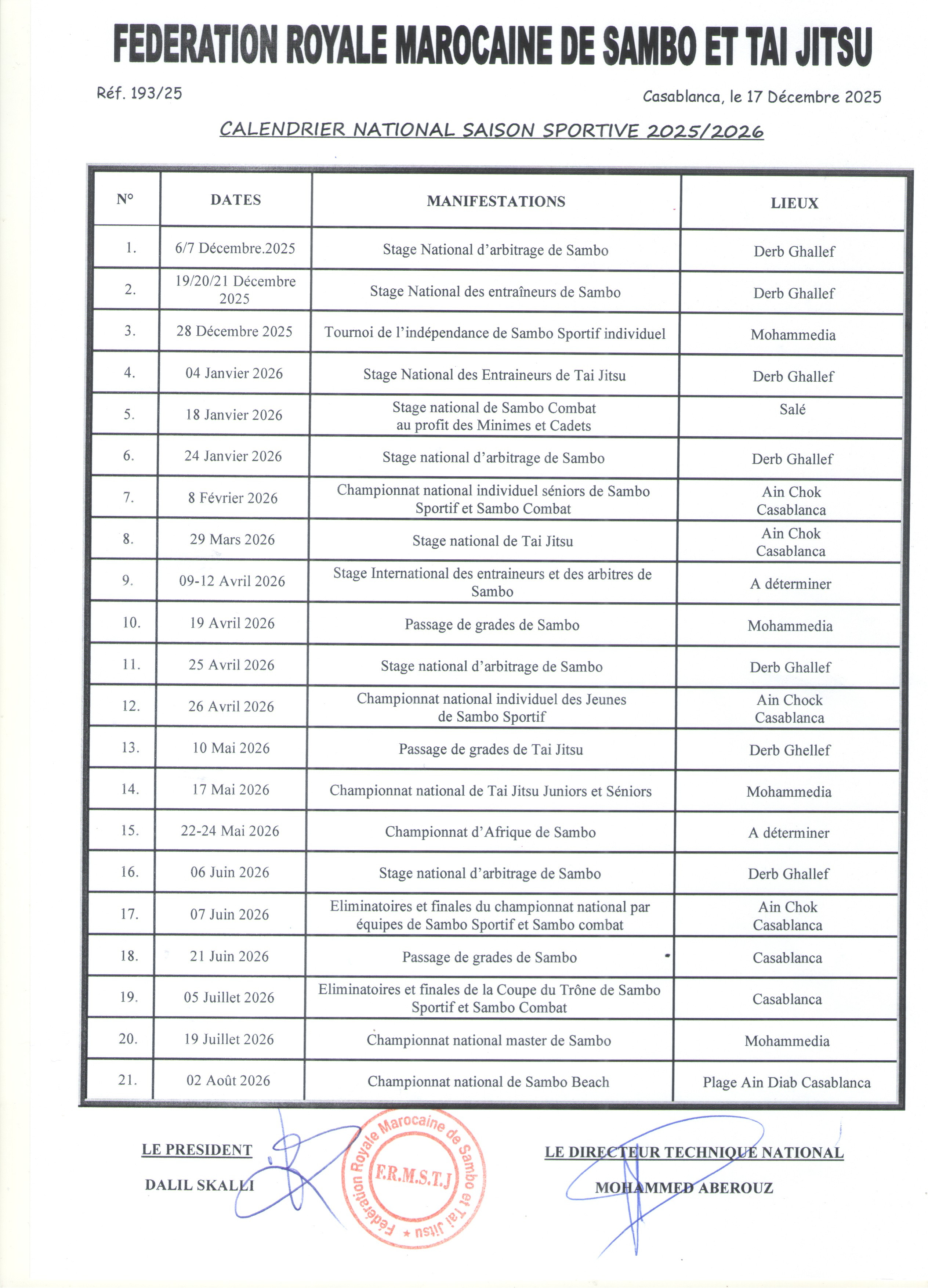 FÉDÉRATION ROYALE MAROCAINE DE SAMBO ET TAI JITSU