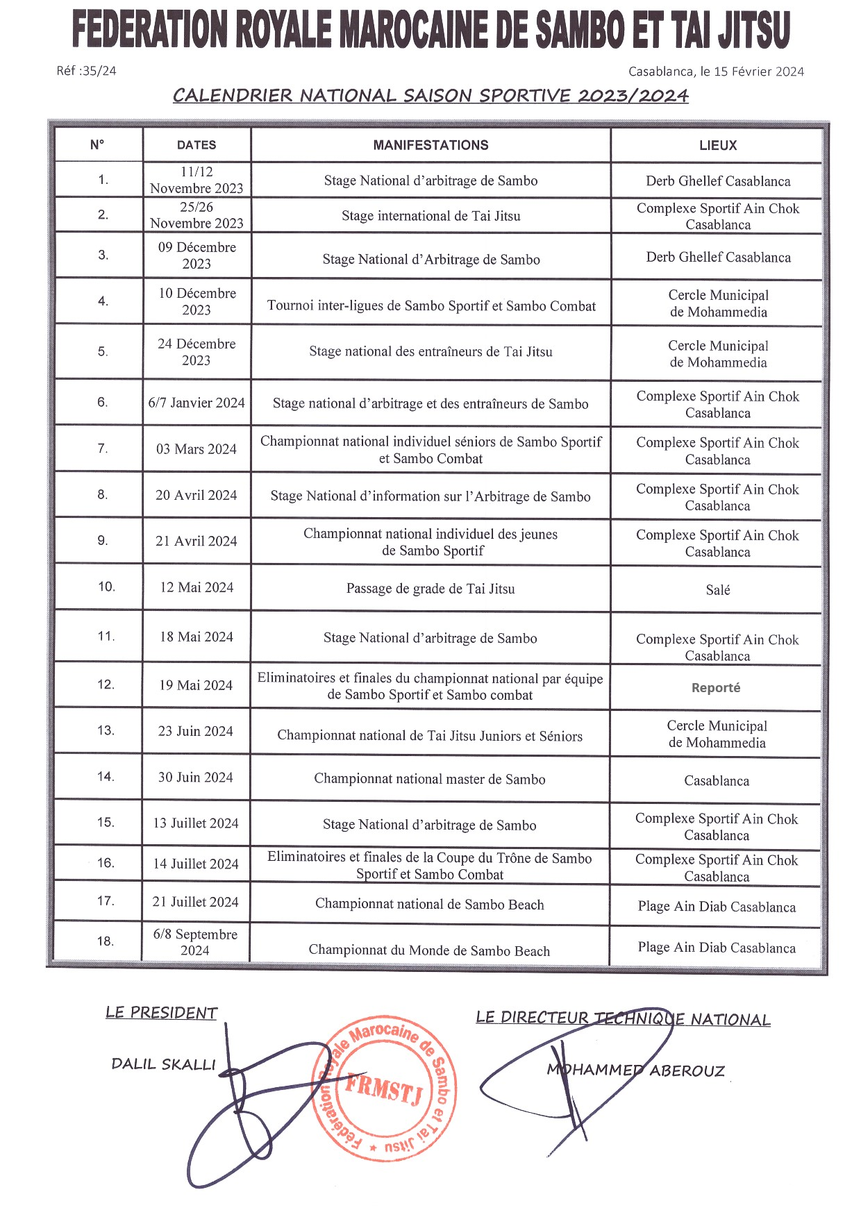 CALENDRIER NATIONAL FRMSTJ SAISON SPORTIVE 2023-2024