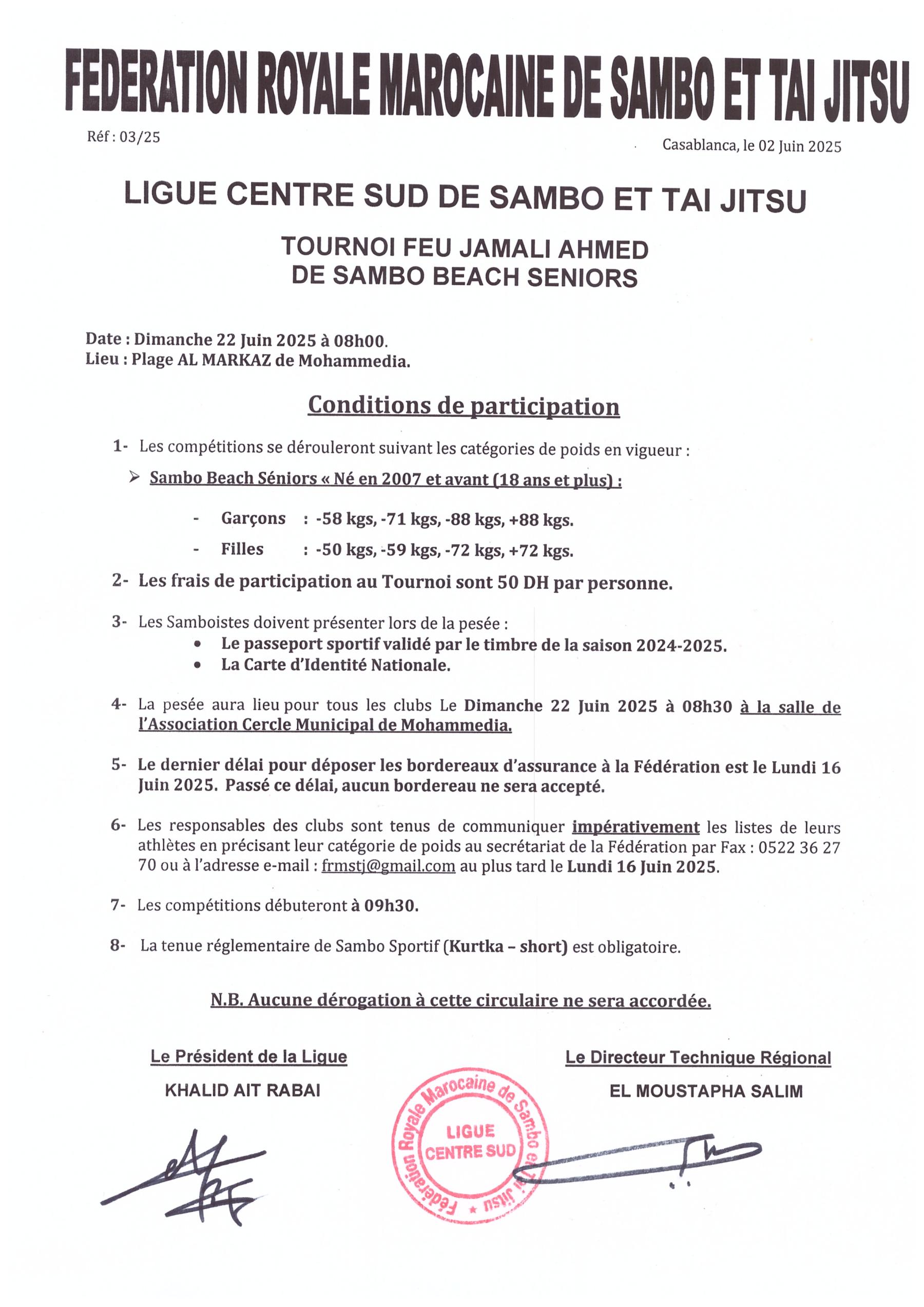 FÉDÉRATION ROYALE MAROCAINE DE SAMBO ET TAI JITSU
