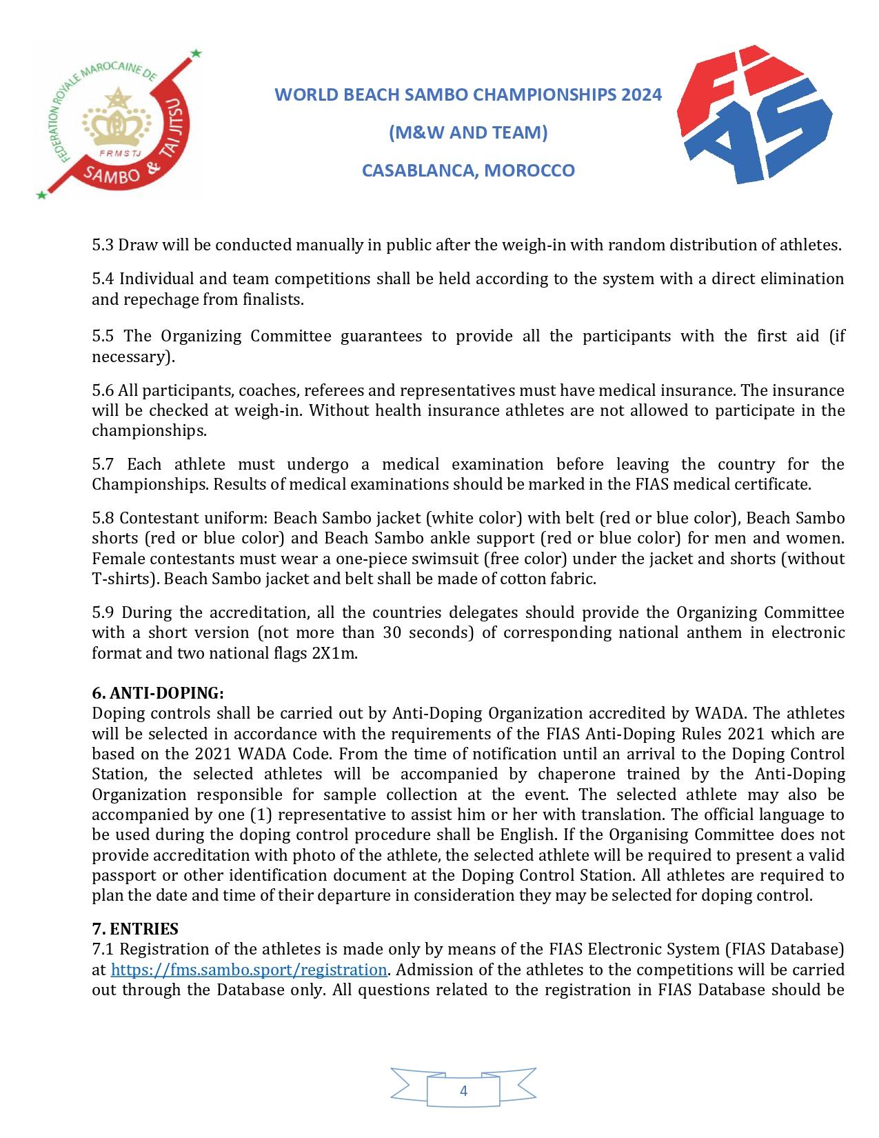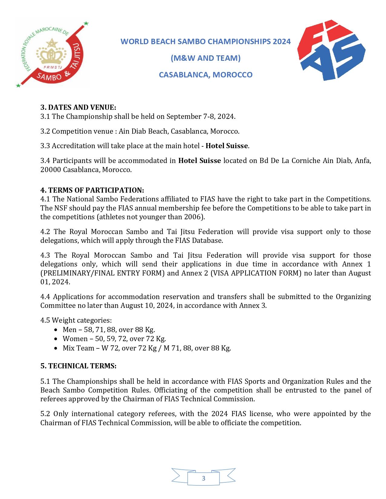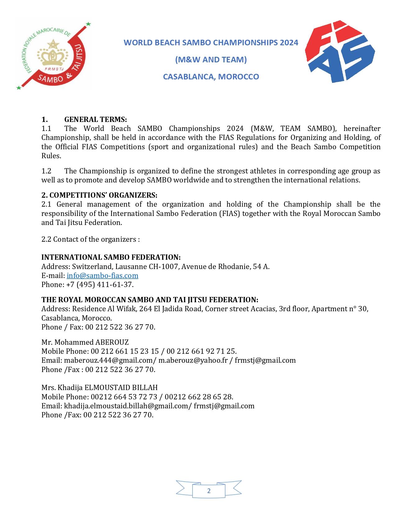 REGULATIONS - WORLD BEACH SAMBO CHAMPIONSHIPS - CASABLANCA 2024