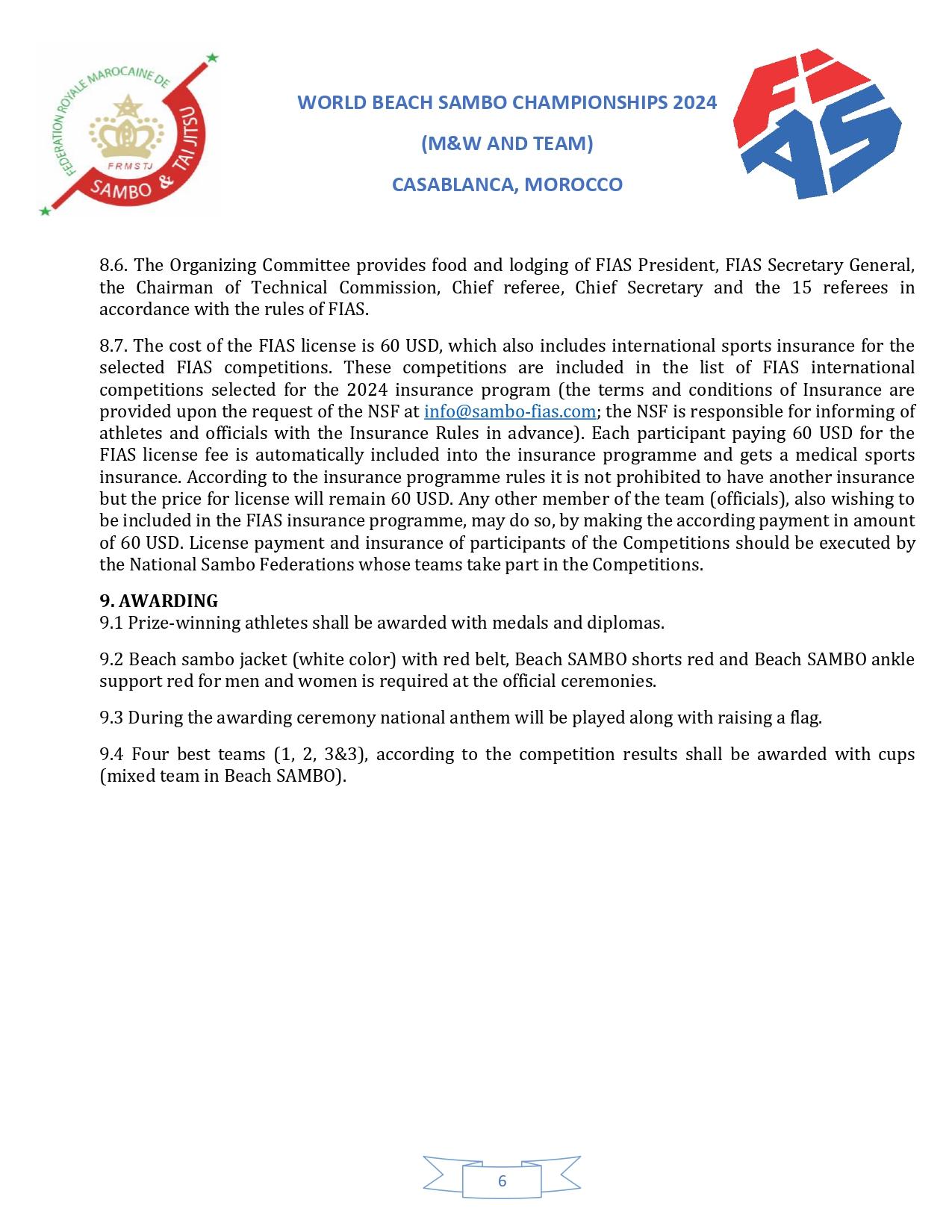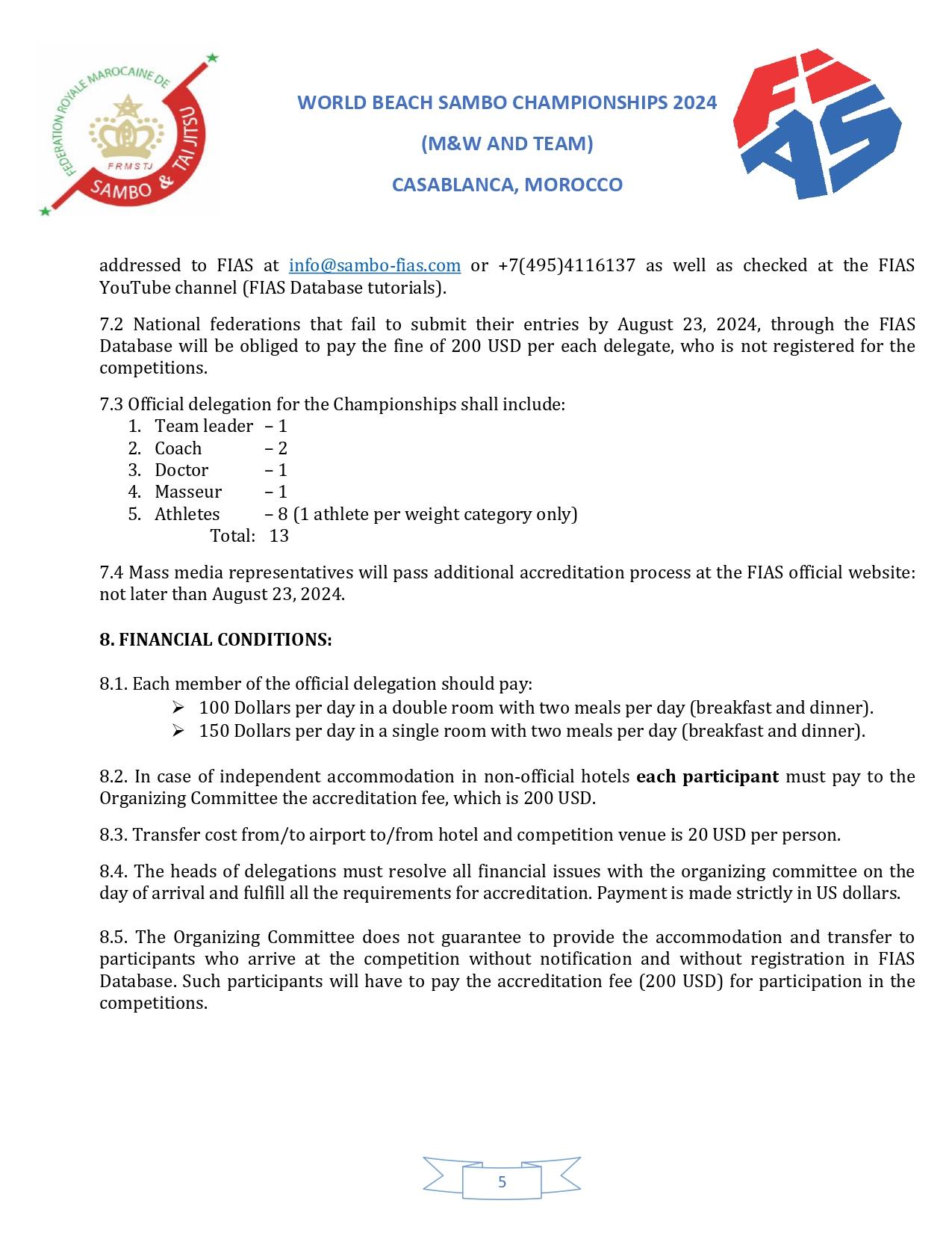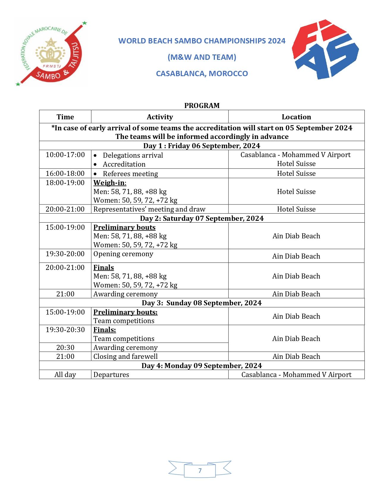 REGULATIONS - WORLD BEACH SAMBO CHAMPIONSHIPS - CASABLANCA 2024